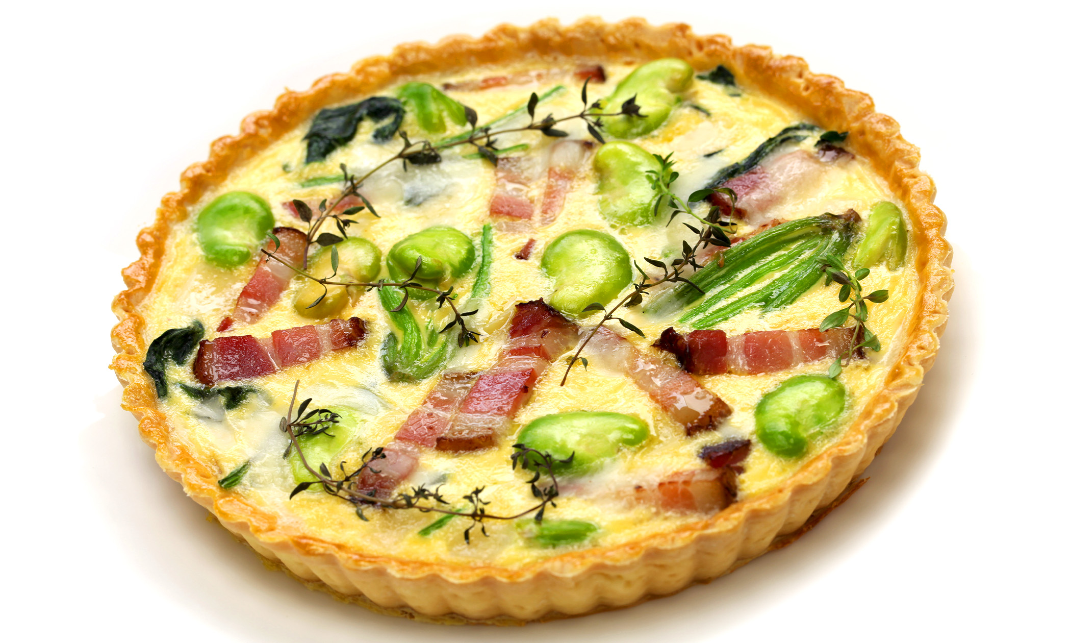 La torta salata con fave e pancetta è ottima sia calda che tiepida.